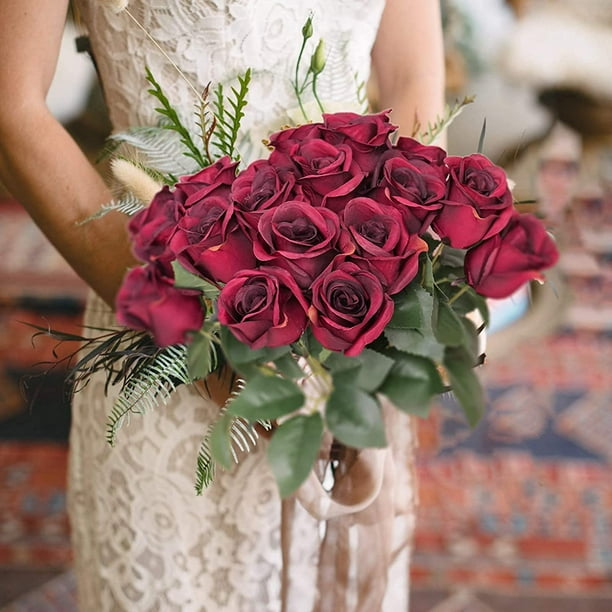 Artificial Burgundy Flowers 16 Inches Artificial Silk Rose Faux Rose Mother S Day Bouquet 9 Heads Vintage Rose For Diy Wedding Table Centerpiece Party Decor Walmart Ca